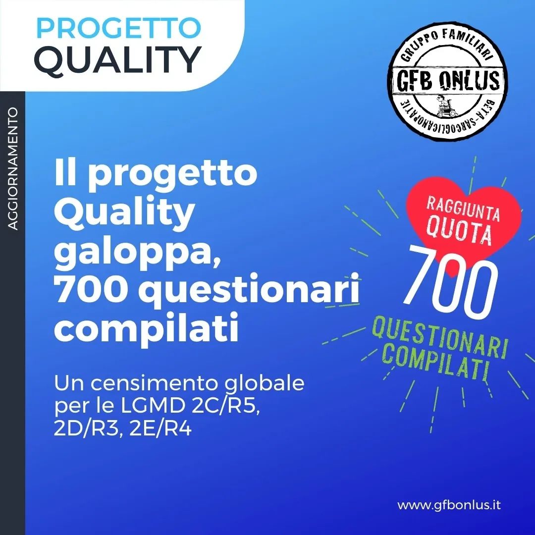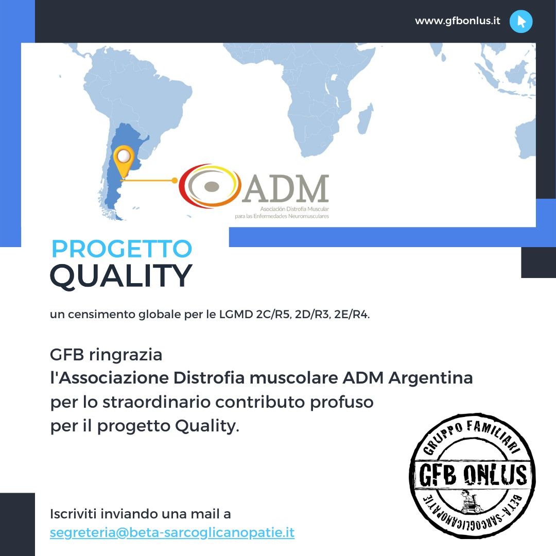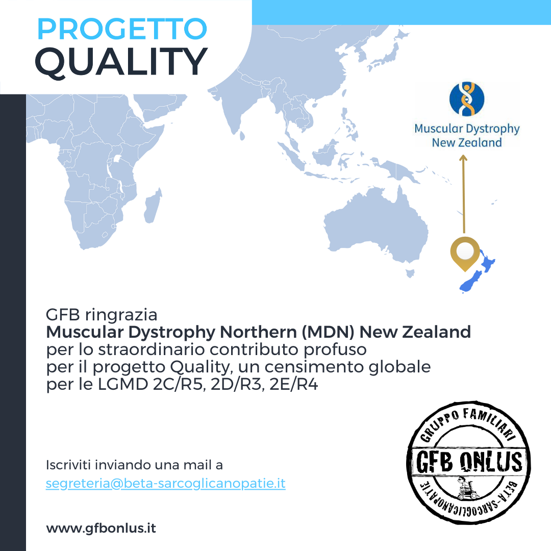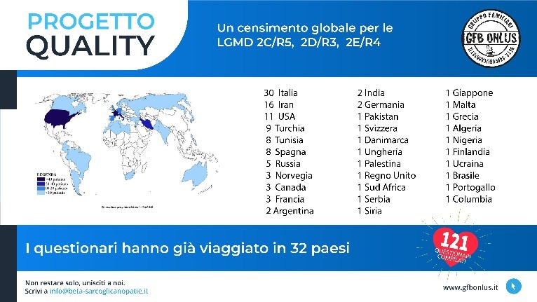 Attualmente GFB resta ancora l’unica organizzazione esistente dedicata alla LGMD2E o LGMDR4 . In questi 11 anni GFB si è impegnato nella ricerca di altre famiglie colpite da queste malattie e attualmente è in contatto con oltre 600 pazienti, sparsi in tutto il mondo e in vari gruppi.