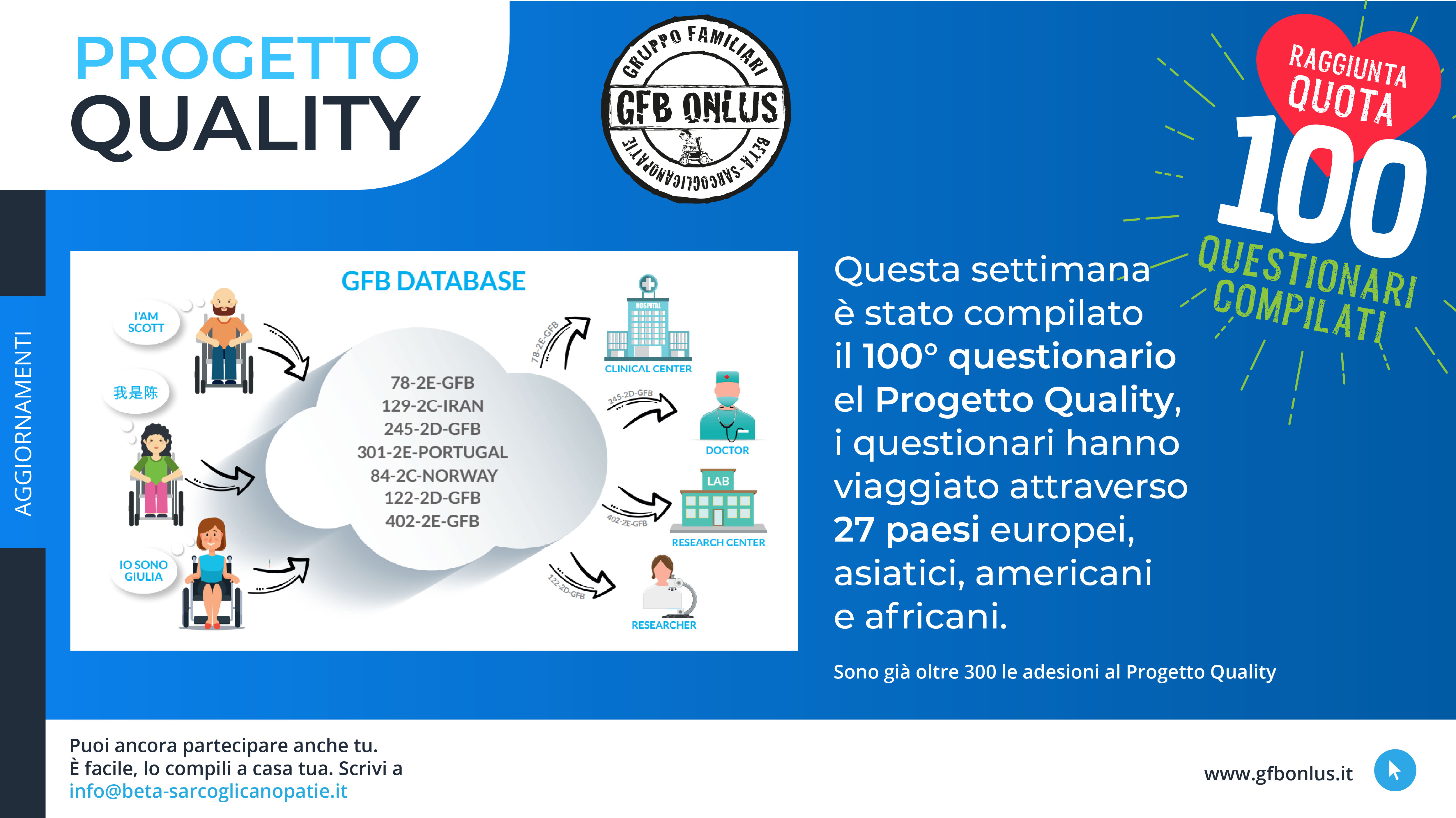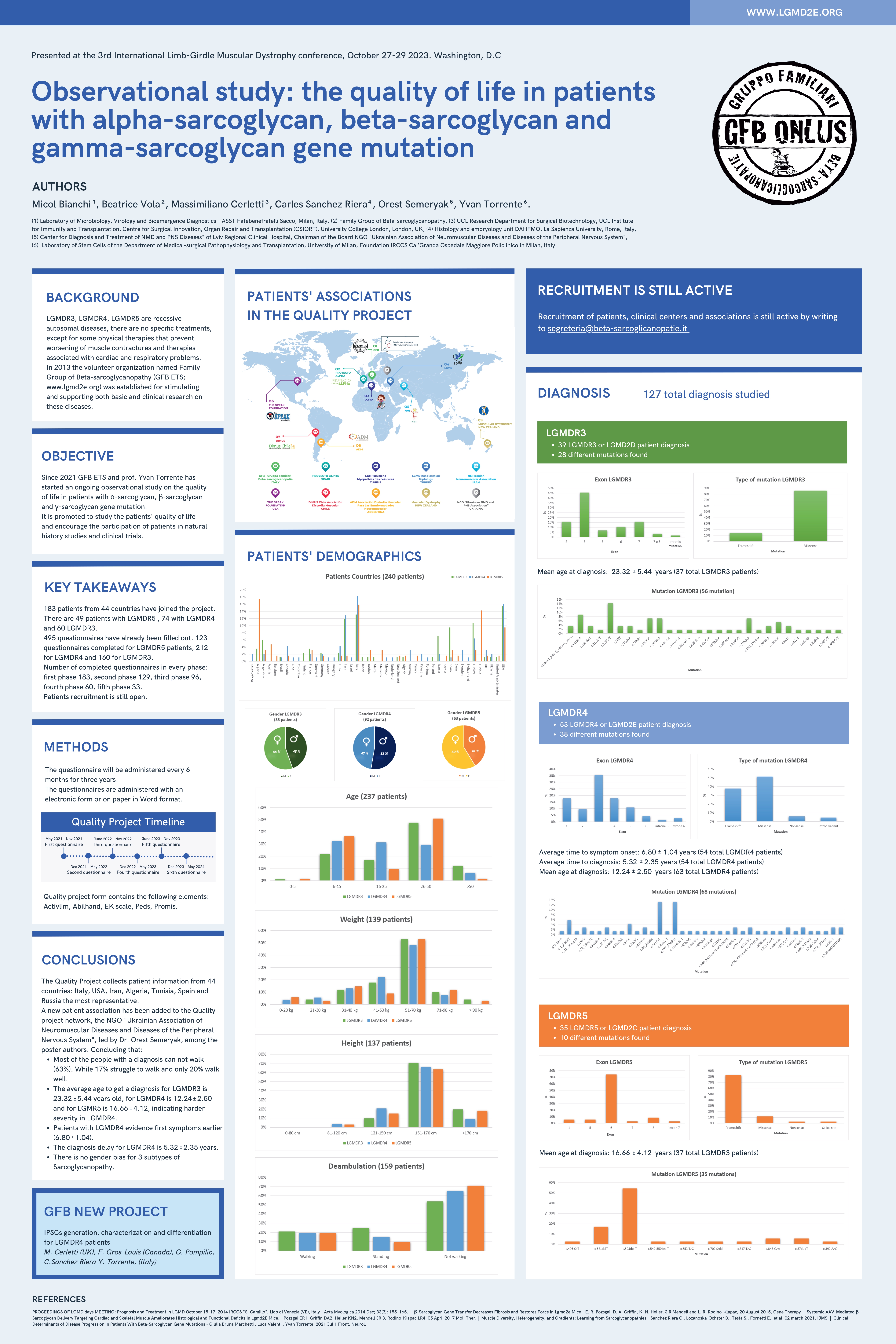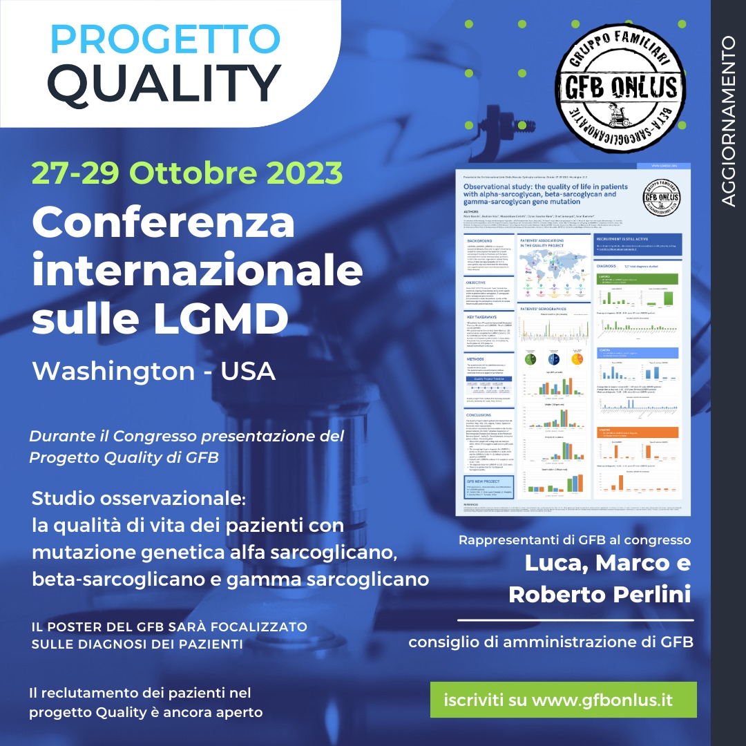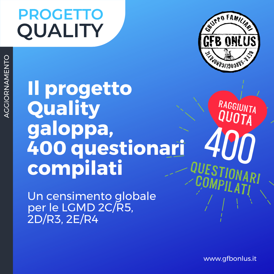 Attualmente GFB resta ancora l’unica organizzazione esistente dedicata alla LGMD2E o LGMDR4 . In questi 11 anni GFB si è impegnato nella ricerca di altre famiglie colpite da queste malattie e attualmente è in contatto con oltre 600 pazienti, sparsi in tutto il mondo e in vari gruppi.